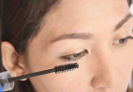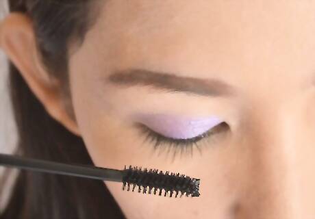 Mascara is last for the eyes. Sweep two coats on and when it's dry, (optional) comb the lashes so they don't clump and make the eyes more open.