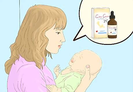 Provide probiotics to ease colic. A new study has shown that probiotics might ease the severity of colic. Colic is characterized by a stomach pain, crying, and digestive issues. Some specific benefits include: Babies given probiotics for colic tend to cry about half as much as babies that aren't given it. Children taking probiotics to ease colic may vomit less than kids that aren't given it. Babies given probiotics tend to have more bowel movements than babies that aren't given it. Only provide your baby probiotics for colic under the advice of a medical professional.