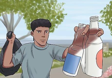 Recycle. This is one of the most important parts of going green. Every single thing you'll recycle means one less piece of rubbish polluting the Earth. You can recycle paper, plastic things (such as water bottles), even soda cans. Try to convince your parents to get recycling bins.