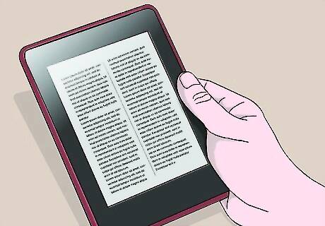Buy an e-reader. One of the great things about getting the newspaper, your favorite magazine, or a good paperback, is that you can tote it around with you. No one wants to sit and read at the computer all day. But you don't have to! Get an e-reader like a Kindle, a Nook, or an iPad and upload your favorite reading material onto an easy-to-transport and even easier-to-read interface. If you're too in love with the feel of real books to use a cold stainless e-reader, you're not alone. But that doesn't mean you need to buy brand new hardbacks and contribute to paper waste. Visit your local public library and share books, magazines, and newspapers for free. Many libraries actually have e-borrowing, which will let you borrow e-books and read them on your mobile device or tablet for a limited period of time.