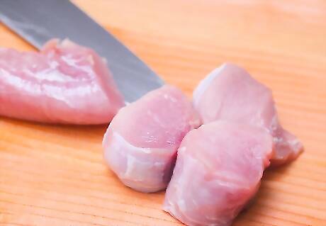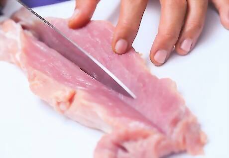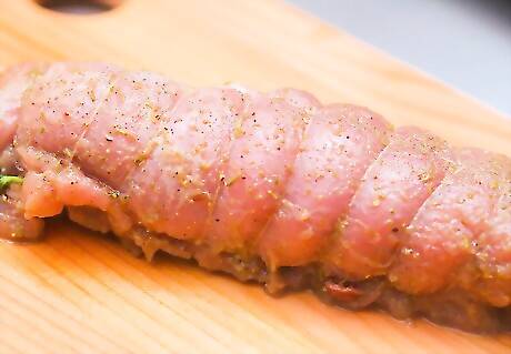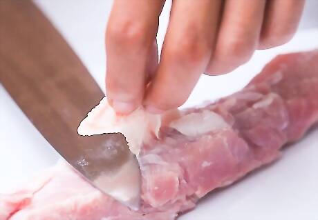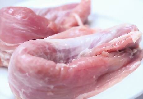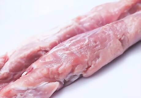 Clean the meat and trim away any imperfections. Tenderloin should be mostly pink and clean, with few bits of connective tissue or fat attached. If you get a piece that does have some, trim it off and discard it. Do not rinse raw meat in the sink, which can spread bacteria around your clean kitchen. Simply pat it dry with a paper towel, if there are any undesirable bits stuck to it.