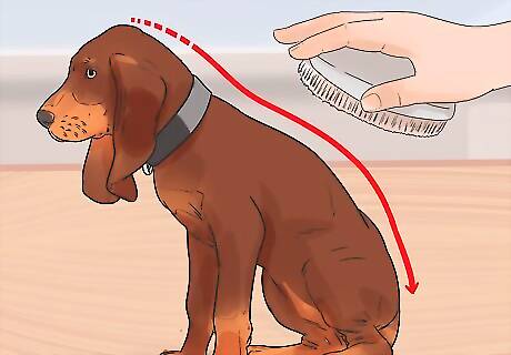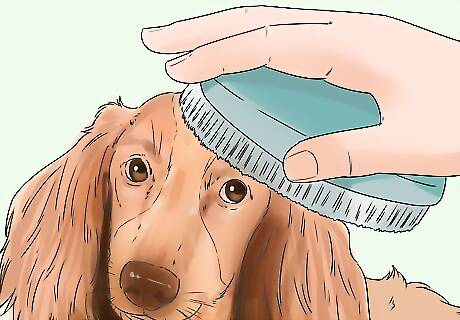 Brush back from the head down the body. Working in small sections, you can use the wire pin brush to brush the entirety of the coat. Brushing helps to remove dirt and dead hair from your dog’s coat to keep it healthy. Be very gentle with the fur around your dog's face.