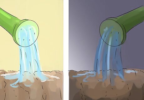 Apply water all over the farm land, and evenly. Keep the land as moist as possible, but don't flood the land and prevent, as much as possible, any running water, so as not to leach the nutrients.