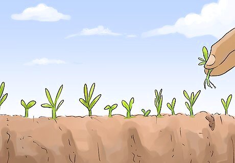 Plant late in the evenings or early in the morning. Evenings are preferable. Plant by taking a pinch of the little seeded carrots and pouring them into the grooves created in the field. Pour the carrots evenly and at a low density.