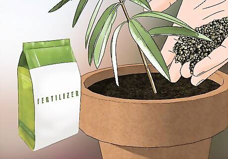 Fertilize using a complete plant food. This should be applied about every six weeks.