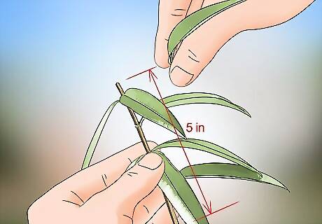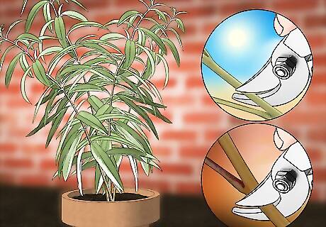Trim a 12cm (5") piece from the parent lemon verbena plant. Remove one third of the upper leaves on the cutting and thin the lower leaves.