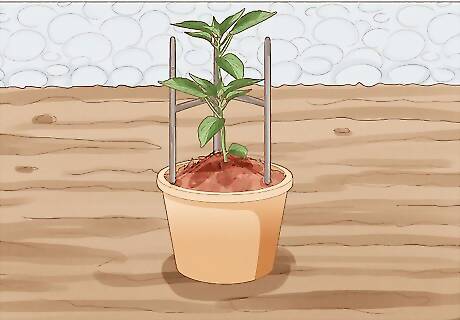Provide support. This plant needs to climb and needs something like a wall, pillar or a wooden trellis. It will also climb along an open fence or railing.