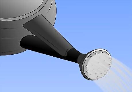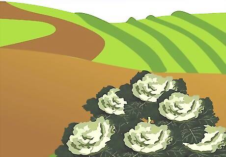Be sure to water ornamental kale when the top of the soil begins to dry. Use a soaker hose or garden hose with a sprinkle-type nozzle to water them below the leaves in order to keep the leaves as dry as possible. Water them in the morning so that any water that does get on the leaves will dry throughout the day. Give them 1 to 2 inches or 3 to 6 gallons (11.4 to 22.7 L) of water each time. The easiest way to measure how much water is being given with a soaker hose is to place a 1-inch deep can next to the plants. When the can is full, the plants have received about 1 inch of water. Too much water will cause ornamental kale leaves to turn yellow and drop. Not enough water will cause the leaves to wilt.