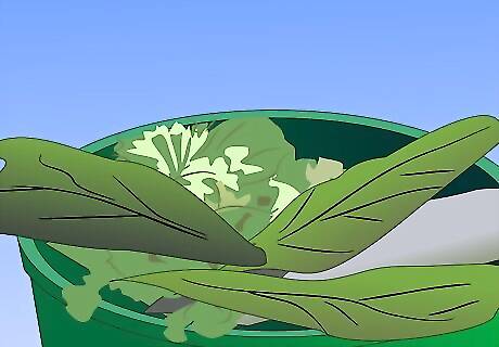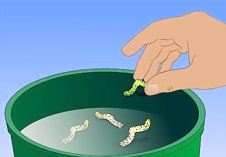Pick off any caterpillars and drop them in a bucket of soapy water to drown them. Caterpillars will munch on the kale’s leaves, leaving very distinct rounded holes on the leaves or half circles along the edges. Wear protective gloves when picking caterpillars. Some of them can inflict a painful sting.