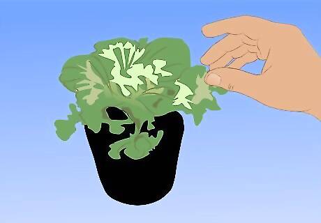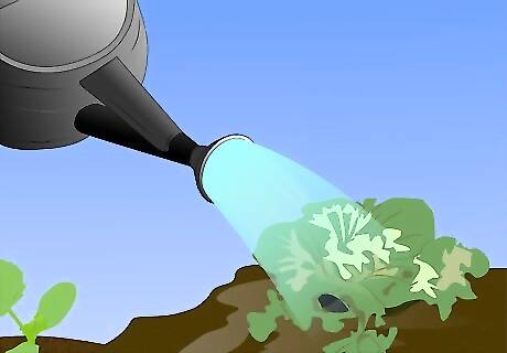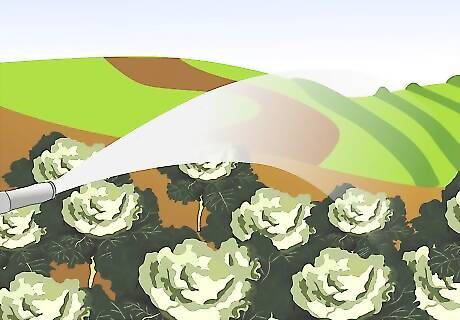 Remove any aphids with a strong spray from a garden hose. The forceful spray of water will usually crush and kill them. Aphids are small, soft-bodied insects that pierce the ornamental kale leaves with their mouths and suck out the juices. These little pests can be nearly any color but are often green or red. They also secrete a clear, sticky liquid called honeydew and can often be found on the undersides of the leaves. Be sure to spray the undersides of the leaves to get rid of any hidden aphids. If the aphids return, spray them again. They may need to be sprayed every few days for a week or two to get severe infestations under control. Always spray ornamental kale in the morning so the leaves will dry quickly during the day.