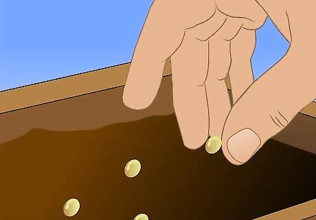 Plant seeds indoors in potting mix designed for seed germination. A good mix contains one-third sphagnum peat moss, one-third soil and one-third course sand, perlite or vermiculite. Pour the potting mix into the flat, level it and moisten it with room-temperature water.