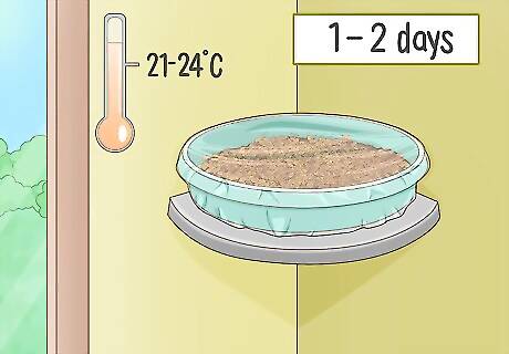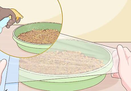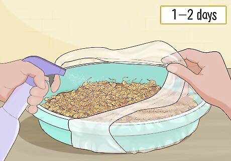 Water the tray just enough to keep the growing medium moist. Check the growing medium 1 to 2 times per day to make sure it’s slightly damp. If it starts to feel dry, mist it lightly with cool or lukewarm filtered water. You may need to mist the tray every 1 to 2 days to maintain a moist environment. Be sure not to water so much that the growing medium becomes soggy or water stands in the tray.