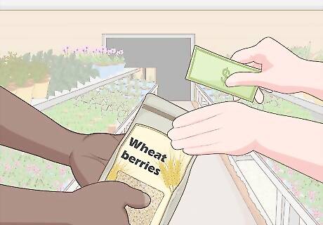 Purchase organic seeds in bulk from a reputable retailer. To help maximize the number of seeds that germinate, buy organic wheat berries from a quality nursery, health food store, or agricultural supplier. For best results, you’ll need to cover your growing medium with a thick carpet of seeds, so buy enough seeds for the number of trays you’ll plant.Choosing the right amount of seed: As a rule of thumb, use about 1 cup, or ½ lb (225 g), of wheatgrass seeds per 8 in (20 cm) of tray diameter. You can store seeds in a cool, dark, dry spot for up to 2 years, so spoilage isn’t a major concern if you buy, for instance, a 5 lb (2.3 kg) bag.