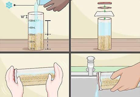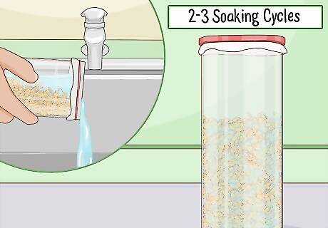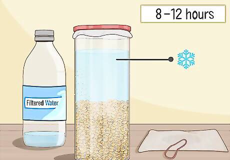 Rinse and drain the seeds before soaking them. Fill a large (pint or 500 mL) glass jar about halfway with seeds, then add cool, filtered water to about ⁄2 in (1.3 cm) below the rim. Cover the top with cheesecloth, secure the cloth with a rubber band or the jar’s collar ring, and cap the jar with its lid. Gently shake the jar for a few seconds to rinse the seeds, then remove the lid and drain the water through the cheesecloth. Preferably, use filtered water instead of tap to avoid introducing chemicals or microscopic organisms. If you don’t have cheesecloth handy, pour the water through a fine mesh strainer or colander. Catch the seeds in the strainer, then return them to the jar. Just make sure the holes are smaller than the seeds.