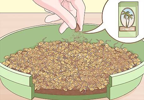 Sprinkle growing medium lightly over the seeds to partially cover them. Once you’ve spread the seeds, sprinkle a thin layer of additional growing medium over the tray. Don’t bury the seeds; just partially cover them with a light dusting of growing medium. Lightly dusting the seeds with growth medium will help keep them moist.