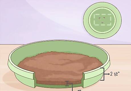 Cover a 2 ⁄2 in (6.4 cm) deep tray with 1 in (2.5 cm) of growing medium. Grow your wheatgrass in a shallow plastic or terracotta tray with at least 2 to 3 drainage holes. Your plants will only need a thin layer of medium, so just cover the bottom of the tray with about 1 in (2.5 cm) of coconut coir or other soil alternative. Spread the layer uniformly, but try not to pack it tightly. The sprout’s roots won’t spread well if the growing medium is too dense.