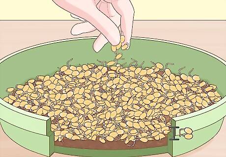 Spread the sprouted seeds over the medium in a dense, even layer. After moistening the growing medium, carefully sprinkle the seeds into the tray. Aim to completely cover the entire surface of the growing medium with a uniform layer about 2 seeds deep.Tip: Carefully shake the delicate sprouted seeds out of the jar, and try to avoid using your fingers. Be as gentle as possible if you do need to even out the layer of seeds by hand.