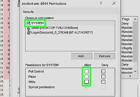 Remove all permissions from SYSTEM and click OK. Remove the checkmarks from the "Allow" column, then click OK to save your changes. Now you can shut down LanSchool by right-clicking it in Process Explorer and selecting Kill Process.