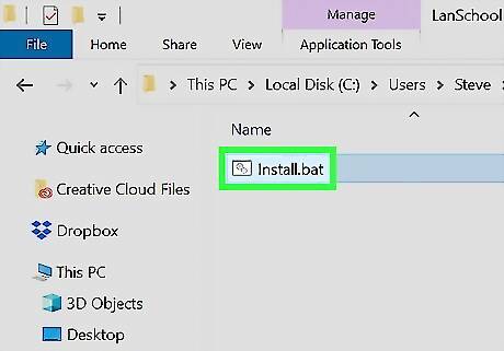 Run the script. Double-click the downloaded file ("Install.bat") and select More information > Run anyway. This installs a program that blocks LanSchool and LanSchool Air the next time you start your computer. This won't affect any web browser extensions your school added to Chrome. If you use Chrome on your school computer, try Edge or Firefox instead. If you want to uninstall LanSchool Blocker, go back to https://github.com/iwannet/Projects/tree/main/Lanschool_stop#lanschoolair-blocker and click Script under "Uninstalling." Once downloaded, double-click "Uninstaller.bat" to uninstall.