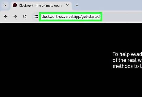 Go to https://clockwork-os.vercel.app/get-started in a web browser. This takes you to the website for Clockwork, an easy LanSchool hack that lets you play games and browse the web even if it's blocked on your school computer. This will work on any computer that hasn't blocked the website—even if your school computer is a Chromebook or MacBook! Clockwork has all kinds of apps to bypass LanSchool, including private web browsers, games, and texting apps that you can use to chat with other friends at school.