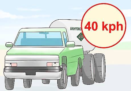 Tow the tank as a slow-moving vehicle. Slow-moving vehicles can travel no faster than 25 miles per hour (40 kilometers per hour), and must display a slow-moving vehicle emblem at the rear. Individual states may have additional requirements for tank wagons being towed at night to display lights and reflectors to be better seen by oncoming vehicles.