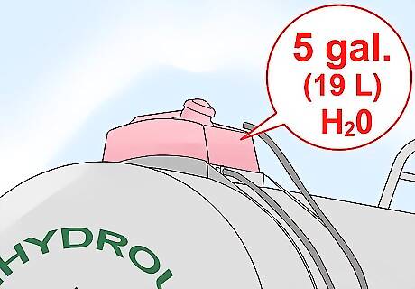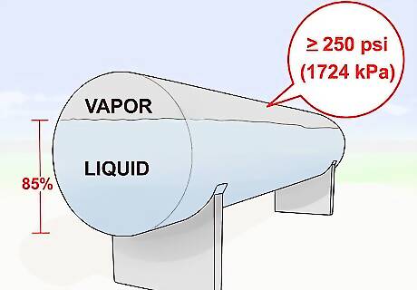Store anhydrous ammonia under pressure. Anhydrous ammonia boils at a temperature of  -28 degrees Fahrenheit (-33 degrees Celsius). To keep it liquid at temperatures above this, it must be stored and injected into the soil under pressure. (Once in the soil, the liquid ammonia turns to gas, releasing its nitrogen into the soil as it absorbs the soil's moisture.) Containers used to store anhydrous ammonia should conform to the guidelines of the American National Standards Unit, with all parts and surfaces able to withstand a pressure of at least 250 pounds per square inch (1724 kilo-pascals). One cubic foot (28.3 liters) of liquid anhydrous ammonia vaporizes to 855 cubic feet (24,196.5 liters) of gas. Nurse tanks (on-farm storage tanks) and applicator tanks should be filled no more than 85 percent full, to allow for some of the ammonia to vaporize without rupturing the tank.