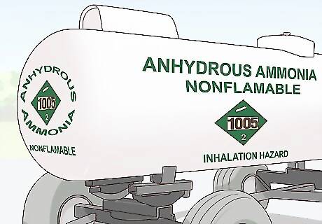 Label the transport tank. The words "ANHYDROUS AMMONIA" and "NONFLAMMABLE" need to appear in large green letters on both sides and either end of the tank, along with U.S. Department of Transportation placards showing the code number "1005" alongside those words. The words "INHALATION HAZARD" need to appear on 2 of the 4 sides. Many states regard farmers' transport tanks as "implements of husbandry." As such, they must comply with the state's regulations for such implements, in addition to federal regulations.