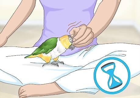 Be patient. Every caique parrot will move at its own pace. Some parrots will be ready to be handled after only a few days. Less socialized birds, however, may need a few months or more. If things seem to be going slowly, do not attempt to rush the process by petting your parrot even it shies away or forcing it into your hand. If you don't let your parrot go at its own pace, it may develop aggressive tendencies.