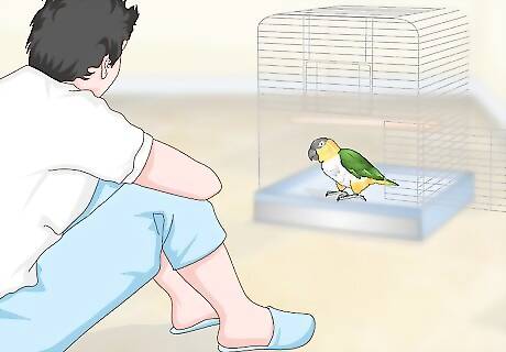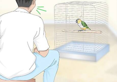 Give a new parrot a few days to get used to you. If you just got your parrot, give it its space. Trying to handle a caique parrot immediately will usually backfire as your bird won't take to handling if it doesn't feel safe. For the first few days, do not attempt to handle your parrot. While you shouldn't attempt to handle your parrot, allow it to get used to your presence. Stay in the same room as your parrot and talk to your parrot to help it get used to you.