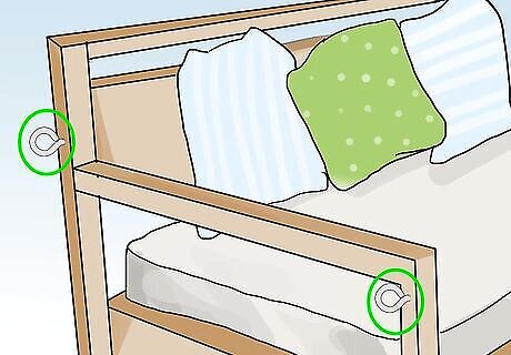 Attach the swing hooks. If your porch swing didn’t come with swing hooks, you’ll need to attach some. The precise location where you’ll need to attach the swing hook depends upon the design of your porch swing. Generally, you should locate the point where the vertically-oriented front of the armrest intersects with the horizontally-oriented front-most edge of the actual seat. Install one swing hook facing out from the side of the porch swing, then install another at the corresponding point on the opposite side of the swing. Place the next two swing hooks on the porch swing at two points located at the same height as the swing hooks you’ve already connected, but place them toward the rear of the seat where the seat intersects the back. Drill pilot holes before screwing the swing hooks into the porch swing itself. Use a drill bit with a diameter just a bit smaller than that of the pointed end of the swing hook to drill your pilot hole. This is an important step that can prevent your porch swing from splintering. When you’re ready, screw the swing hooks into the porch swing by hand.