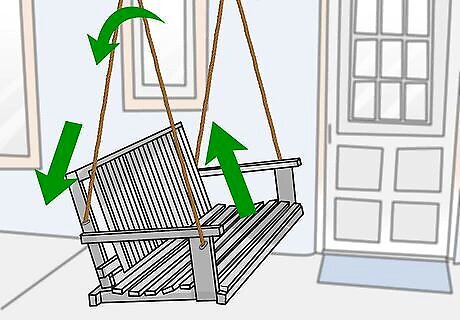 Test your swing. Give it a push. If it moves properly back and forth, you’ve succeeded in hanging your porch swing. If you find that one end is not quite even with the other, leading to an off-kilter appearance, adjust the chain’s location on one or the other sides. For instance, if the right side of your porch swing is lower than the left, you’ll need to shorten the length of chain connecting the two swing screws on the right side. Alternately, you could extend the length of chain between the two swing screws on the left side so that it sits lower.