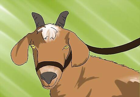 Place the goat in a shearing restraint for shearing. Usually this will mean only its head is restrained. Shear tail to shoulder length first, each side. Shear down the shoulders. Finish by shearing shoulder to tail.