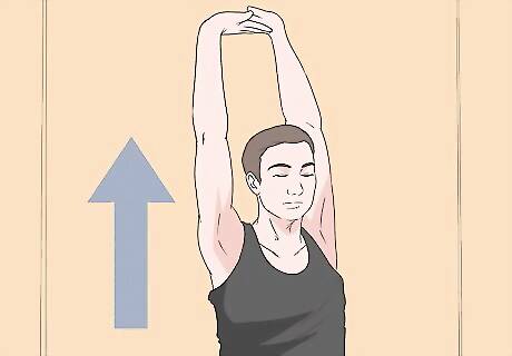 Stretch once per hour to make more room for your lungs. Reach up and stretch your body upwards as far as you comfortably can. Whether you are sitting or standing, stretching your body upwards elongates the area where your lungs are situated. You may also find it easier to breathe deeply after you stretch.