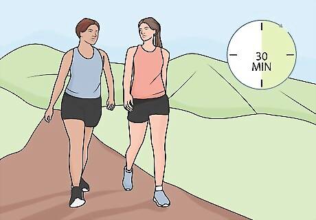 Get at least 30 minutes of physical activity 5 days per week. Staying active is proven to reduce fibromyalgia symptoms, even if it’s initially painful. Try to get some physical exercise every day. A good target is 30 minutes a day for 5 days a week, but you can do more than this as well. Walking, running, biking, weightlifting, aerobics, kickboxing, and yoga are just some of the activities you could try. Playing sports counts as well. Start slow if you’re not used to working out. Don’t try to lift too much weight or run a marathon right off the bat.