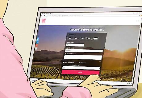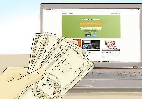 Give money to crowdfunding campaigns to help individuals or groups. Crowdfunding sites allow you to donate to individual victims or families as well as larger communities. You can read their story and see how much each group or person is hoping to raise. Even donating just a few dollars will help victims begin the process of rebuilding their lives. Look for campaigns on sites like: GoFundMe. Fundly. YouCaring. The city of Santa Rosa has its own campaign, and Bay Area sports teams have started their own as well, both raising money to rebuild communities and help victims. Go Fund a Hero. The North Bay Fire campaign on this site is tailored specifically to firefighters who lost their own homes while trying to save other buildings and communities.