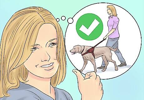 Support their use of a guide dog. If your sibling gets an assistance dog, do your best to encourage the dog’s work performance. Do not feed or distract the dog while it is working. Do not pet or interact with it unless your sibling tells you that it is okay to do so. Learn how to place the harness on the dog in case your sibling asks you to. You could also possibly help your sibling with the process of researching and selecting an assistance dog. As this is a long term bond, it requires a great deal of forethought and planning.