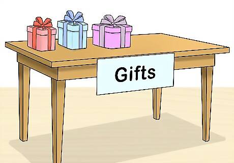 Have a gifts table. It is tradition for guests to bring small gifts for the bride to the bridal shower. Make sure you have a table or area set aside for gifts. Put a sign up that says “gifts” so guests know where to put them.