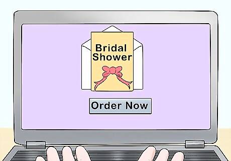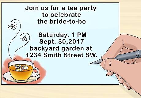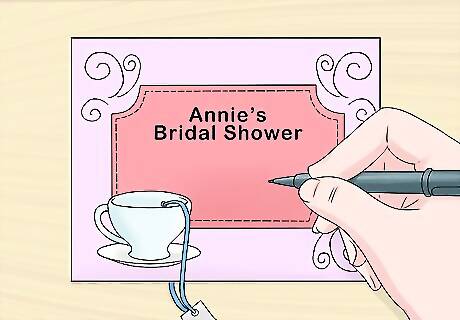 Make your own themed invitations. Use a soft color scheme to match the theme, such as pale pink, blue, or yellow. Mount the invitations on cardstock and write them by hand. You can also type up the invitations if you have a lot to send out. Include images that the bride likes on the invitations, such as an animal or item she likes. You can also put images that suit the theme, such as a tea cup, a bridal veil, or a garden scene.