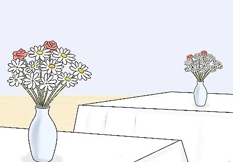 Set out fresh flower arrangements. Fresh flowers add an extra level of detail to a tea party. Order fresh flowers from a local florist in the bride’s favorite colors, or in her wedding colors. Put them all over the venue in vases.