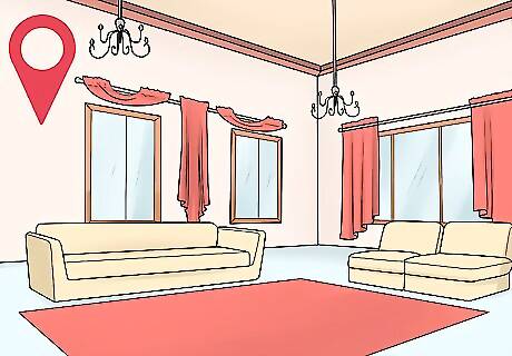Decide if you are going to host the party at your home. If the guest list is small, you may host the party at your home. Usually parties no bigger than 10-20 people are ideal as long as you have a larger home for hosting. If you are hosting the party in your home, you may need to move furniture around or put items away to make space for your guests. Try walking through your home to see how easy it is for others to move around. Designate a few small tables for food and drinks, and set up chairs for guests to sit. If you have a larger guest list, such as 30 people or more, you may decide to host the bridal shower at a venue other than your home. You may look into renting a community hall or reserving tables at a local restaurant, especially if it has a garden.