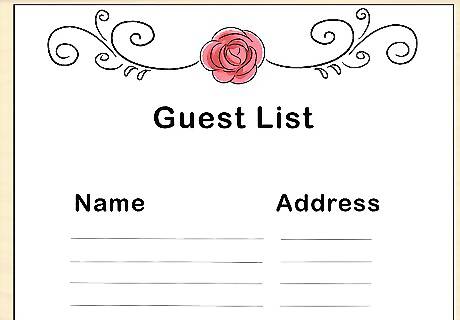 Make the guest list. List all of the guests you plan to invite, as well as their plus ones. Decide if you are inviting children to the party as well, or adults only. Ask the bride’s friends or family to help you draw up the guest list. Bridal shower guest lists usually include the bride’s closest friends and family, as well as the groom’s friends or family. Keep in mind you do not need to invite everyone on the wedding guest list to the bridal shower. Just make sure everyone invited to the bridal shower is also invited to the wedding. You may have a cap on how many people you can host at the bridal shower. Most bridal showers have around 30 people for a larger party and as small as 10-15 people for a more intimate party.