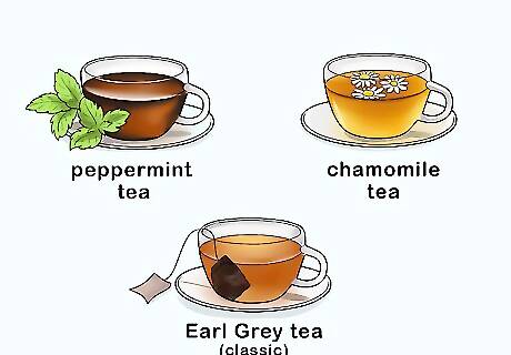 Offer a selection of teas. Have a variety of teas on hand, such as peppermint, chamomile, and classics like Earl Grey and English Breakfast. Keep hot water in a kettle or thermos so your guests can prepare their own tea. Make sure you also have milk, half and half, and sugar cubes or packaged sugar on hand. You can also make a iced tea in a pitcher, such as lavender or chamomile tea over ice.