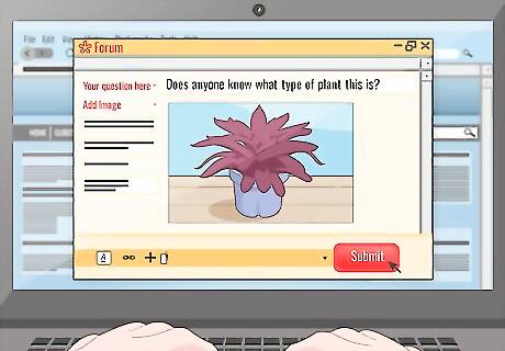 Try an online forum to get help from houseplant enthusiasts. Do an Internet search for houseplant identification forums. Then, submit photos and a detailed description of your plant to the forum. Read through the replies to your post to find a consensus about the plant’s identification. Then, research that plant to make sure it fits your plant’s description. Provide as much detail as possible to help people identify your plant. While you can get a lot of great advice in a forum, there’s no way to know that people are being truthful about their qualifications.
