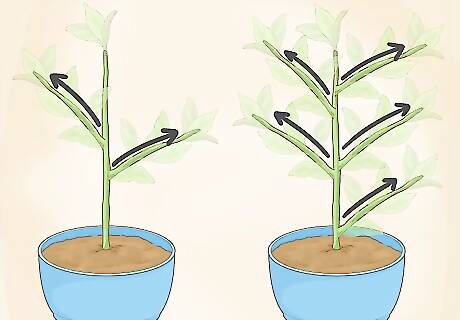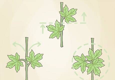 Look at the plant’s stem and branching pattern. Notice if the stem is long or short. Then, look at how far up the stem the branches begin, as well as how the branches are arranged. Notice if the plant branches only once or if it branches multiple times. Finally, record the answers to the following questions in your notebook: Is the stem visible? What is the shape and color of the stem? How do the branches attach to the trunk or stem? Are the branches arranged opposite each other or alternately on the stem?