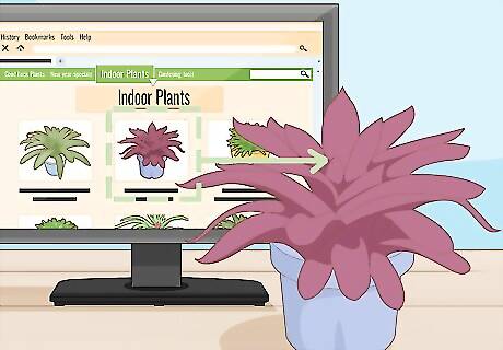 Compare your plant to online photos of indoor plants. Do an Internet search for photos of common houseplants. Then, scroll through the results to find one that looks like your plant. When you see a potential match, read the plant’s name and description to make sure it matches your notes about your plant. If the site you’re looking at doesn’t provide a description, do an Internet search for the plant’s name to learn more about it. Some plants that are in the same family will look similar to each other but have different qualities, and the description can help you make sure you don’t misidentify your plant.Variation: Do a reverse Google image search to find photos of similar looking plants. To do this, go to the Google homepage, click on “images” in the right corner, and click on the camera icon in the search box. Then, upload your photo into the search box and click search. Go through the results to find out what plant matches the photo of your houseplant.