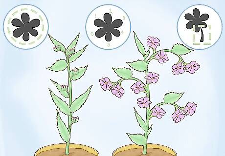 Check if the plant is flowering or has buds. Look at the size and shape of the flower, as well as how many petals it has. Then, observe the color of the petals and any gradation you see. Notice if the flower has a disc in the center or not. Finally, note any special characteristics of the flower that you think will help you identify it. Answer the following questions in your notebook: What color and shape is the flower? How many petals does the flower have? Does the flower have male and female sex organs in each flower? Does the flower have sepals, which are a green leaf-like part that is visible beneath the flower?Tip: When identifying the sex parts of a flower, find the stamen (male part) by looking for a wand-like growth that holds pollen. There may be several stamens. Then, check for the pistil (female part) by looking in the center of the flower for a long tube with a bulb at the bottom.
