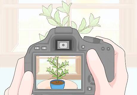Take pictures of the plant so you can find a match. Photos help you identify your houseplant because you can compare them to photos of other plants, upload them onto an app, or ask an expert. Use a digital camera or your phone to take a series of photos. Photograph the entire plant, then take close-up photos of the flowers, leaves, and stem. Make sure the photos are well-lit and show the plant’s features clearly. Blurry photos will be hard to use for identification. If you’re going to show the photos to an expert, take at least 4-5 photos. This will help them differentiate between similar plants.