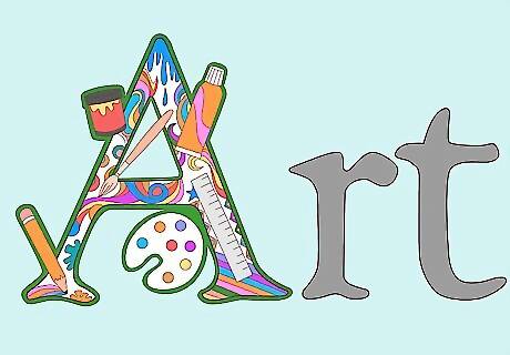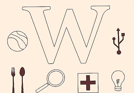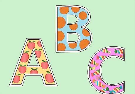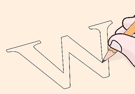 Write or trace a large uppercase letter. Sketch the outline of a letter, making it large enough to leave room for filling it with color and images. Write your letter freehand, or use a premade font for inspiration or tracing. Use a ruler to sketch faint guiding lines if you want to keep the lines of your letter straight and precise. You can erase them later when you no longer need them. It helps to draw the basic frame of the letter (just the lines that you would normally use to write it), then go back and add “weight” by giving the frame a block or thicker curve shape, depending on your font.