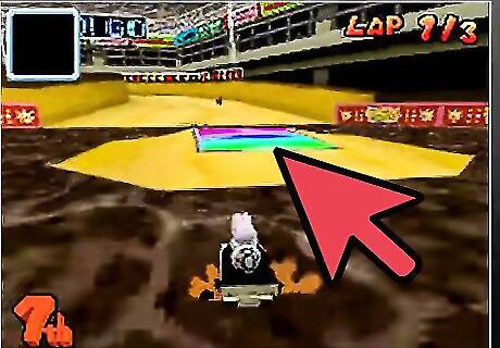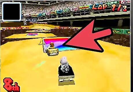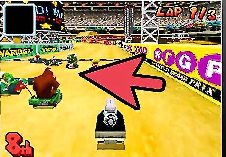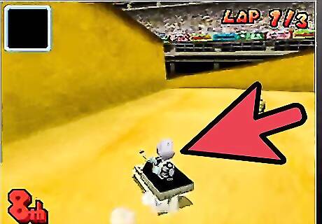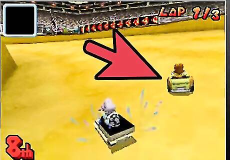 Learn to draft behind your opponents. Staying directly behind a driver in front of you for a few seconds will help speed you up a lot. You will see white lines around your driver while you are doing this, signifying the wind is passing above you. Be careful that they don't drop a banana in your face!