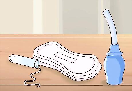Take care with feminine hygiene products. Using some feminine hygiene products, such as douches or feminine deodorants, may cause UTIs. They can irritate the urethra as well as remove natural flora that helps maintain the healthy environment, leading to a yeast infection or bacterial vaginosis. Douching can also lead to pelvic inflammatory disease, complications during pregnancy, STIs, and vaginal dryness. If you feel there is something "off" about the smell of your vagina or there is unusual discharge, this means there is something wrong and you should be checked by your doctor. Douching will not solve the problem and, if anything, could make it worse. When using tampons or pads, you should change them often.